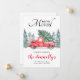 Rustic winter themed moving card featuring a simple white background, watercolor spruce trees, a vintage red truck, a xmas tree, and a new address template that is easy to personalize.