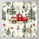 A cute, classic winter design with a vintage red truck, trees, snow and a Snowman!