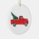 Red Truck with tree Art Ceramic Ornament