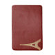 Elegant French inspired bath mat, with graphics of a rich red tufted looking background and a golden Eiffel Tower, on the far left side. Comes in three sizes.