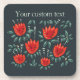Red Tulip Dark Floral Pattern Custom Text Beverage Coaster