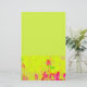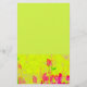 Red tulips with stems in meadow printed on yellow-green stationery.