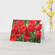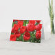 Greeting card. On the front a photo of red tulips in full bloom. Blank inside, click on the Customize button to add your own message.