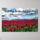 This photograph of an astonishingly red and velvety field of tulips under a blue sky with dramatic clouds was taken in the Skagit Valley during the annual Tulip Festival in Washington state. It is illustrated with a quote by Aristotle "In all things of nature there is something of the marvelous."