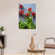 Photograph of red tulips against a blue background. Customize the poster print with your own images or text!