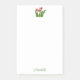 This Post-It note pad features a pretty green scripted name at the bottom of the page and a set of red tulips flowers at the top.