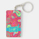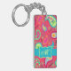Red Turquoise Modern Paisley Pattern Monogram Keychain