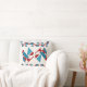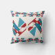Red Turquoise Navy Bordered Mid-century Modern Throw Pillow