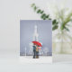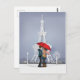 Red Umbrella In Paris Couple Postcard