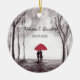 Red umbrella love couple Newlyweds Wedding Ceramic Ornament