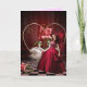 A gorgeous love fairy wearing a ruby red ball gown is standing on a checked floor with a gold heart, swans and pink roses in the background. Enjoy!
