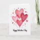 This greeting card features five heart-shaped balloons floating up from the lower part of the design. They’re painted in watercolor shades of red and pink, with soft edges and gentle brush marks that make them feel hand-painted. The hearts overlap a little, and each one looks slightly different in tone, from pale blush to deep red. Around the main group, small loose hearts in light pink and soft silver-gray are scattered across the white background like confetti. The overall setting is simple and airy, keeping the focus on romance and sweet affection ❤️💌. Near the bottom, the words “Happy Valentine’s Day” appear in a flowing script style, written in a dark gray tone that stands out without feeling heavy. It’s an easy, heartfelt design that would pair nicely with a kind note and maybe a little treat 🍫.