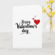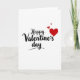 This greeting card features the message “Happy Valentine’s day” in black, flowing cursive text across the center of a plain white background. The letters are smooth and curvy, with thicker and thinner strokes that make the words stand out. In the upper right, there are three red hearts grouped together, with one larger heart and two smaller hearts floating just above it. The hearts are bright red and feel warm and loving, adding a sweet pop of color. A long, curved black line under the word “day” finishes the look and gives the layout a gentle sense of motion. Overall, it’s simple and romantic, with the hearts drawing your eye while the message stays easy to read. Share it with someone special and pass along a little Valentine’s Day love 💕❤️.