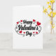 This Valentine's Day card features the words “Happy Valentine’s Day” in flowing black lettering across the center, with the line curving gently like a smile. The background is plain white, which makes the message easy to notice right away. Above and below the text, thin black swirls curl outward and around, almost forming a loose heart shape. Small red hearts are scattered around the words and tucked between the swirls, with a few hearts slightly larger than the others. The hearts look bright and cheerful, adding a sweet pop of color against the black and white design. Overall, it feels classic and romantic, like a simple note meant to make someone feel cared for 💕❤️.