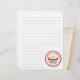 Recipe paper featuring optional lines, which can be removed. Bottom features an lllustration of a red velvet cupcake with white icing inside a decorative red and white circle with red text. Personalize with your name.