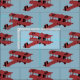 Red vintage toy biplanes toy on blue background fabric pattern fror boy's room home decor