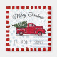 These magnets feature an antique vintage red truck hauling a Christmas tree with a rustic deep red striped border. Personalize it with your family name, and the "Merry Christmas" greeting can be changed to words of your choice in black script and modern typography on a white background with pale blue patterns of dots, checks, stripes and swirls. Designed by © Tim coffey.