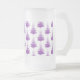 Frosted 16 oz mug with repeated red-violet evergreen Christmas tree pattern.