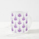 Frosted 10 oz mug with repeated red-violet evergreen Christmas tree pattern.