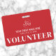 The design features clean and easy-to-read white typography on a red background, ensuring clear identification. The background and text colors can be customized to match your organization's branding or event theme. Whether for short-term events or ongoing volunteer programs, this badge provides a polished and functional way to recognize those giving their time.
