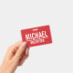 featuring name and title in white bold sans serif font on red background.