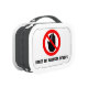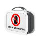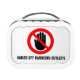 Red warning hands off sign named lunch box