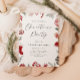 The card is adorned with red, white and green, Christmas themed watercolor illustrations, such as stockings, gifts, hot chocolate, candy cane, ornaments and others, that dance playfully around the edges, creating a festive and charming frame. These delightful illustrations evoke the spirit of the holidays, adding a whimsical touch to your invitation.