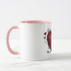 This custom mug features heart illustration in red watercolors, with your single initial monogram inscribed inside. Easy to customize the font.