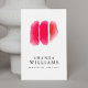 A classic business card template with three red watercolor paint swatches to mimic lip glosses or makeup. An artistic edge on this clean, modern business card designed for makeup artists, cosmetics companies, lip gloss or lipstick businesses, beauty professionals and more. Art and design © 1201AM Design Studio | www.1201am.com