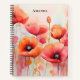 Spiral notebook with a beautiful watercolor image. A field of red flowers with lovely watercolor drips and splotches.
