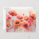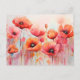 A postcard with a beautiful watercolor image. A field of red flowers with lovely watercolor drips and splotches.
