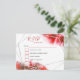 A postcard is a convenient way for your guests to RSVP to your wedding invitations, with your return address details on the back, for ease of replying. This elegant design has black and rich red typography with a silver geometric frame on top of red abstract watercolor on two of the corners. Text is easily personalised and you can change the background color if you wish.