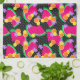 Red green watermelon, oranges, bright yellow lemons tropical fruits on a black and white background. Lovely lavender hibiscus flowers are scattered across the fruits. A fun summer print. Look for coordinating prints in the Tropical Watermelon Collection.