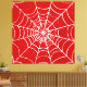 A spider's web forms in a bold, blood-red colored void.