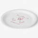 Modern and simple Whimsical Flourish Monogram Wedding Paper Plates featuring an elegant swirl motif in red. Easy to customize, simply add your initial and wedding details in the text fields provided. Click "Customize It" to find more personalization options.