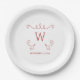 Red Whimsical Flourish Monogram Paper Plates