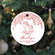 Personalized baby's first Christmas ornaments feature whimsical hand drawn doodle floral and rocking horse in festive red and white, cute and modern.