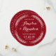 Whimsical and modern save the date announcement featuring winter wreath and polka dots pattern on red background. This design is perfect for winter and holiday weddings. Other colors are available.