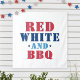 Bring the laughs to your cookout with this playful Red White and BBQ tapestry featuring bold red and blue block lettering with star accents on a white background. A fun and punny Fourth of July barbecue photo backdrop, Independence Day barbeque party decoration, or summer grilling wall hanging.