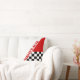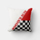 Red White and Black Checkerd Racing Theme and Name Throw Pillow
