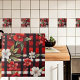 Red White and Black Farmhouse Floral Check Ceramic Tile