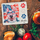 Embrace the 4th of July with our Red White and Blue Funny Bull Terrier Dog Treat American Flag Cutting Board! This patriotic 4th of July funny dog owner gift features stars, a Bull Terrier adorned with the American flag. Surrounding this proud pup are playful dog paws in vibrant red, white, and blue, each adding a festive touch. The blue paw boldly features the word WOOF, capturing the joyful essence of canine companionship and patriotic pet. This dog cutting board combines patriotism with the love for dogs uniquely and festively. Great 4th of July Dog design for an Independence Day party to celebrate with family and friends. Funny Mother's Day gift from dog or/ and a funny gift for dog dad on Christmas, Birthday or other celebration!