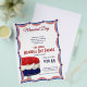This fun set has a fresh modern feel with red and blue bunting graphics creating a frame. In the lower left corner there is a red, white and blue cake. Memorial Day is a great time to honor and remember our Veterans and fallen heroes and to celebrate our country - and we all do it in different ways. Whether you are planning a party, putting up flyers for a parade, or want to invite the neighbors to a barbeque picnic - you will find everything you need. There are invitations, flyers, postcards, t-shirts, bags and other gifts as well!