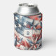 A great monogram can cooler. The front and back of this special can cooler is festive red, white, and blue (a decorative representation of some of the American symbols). Use the template to customize. Add your desired monogram or initial.