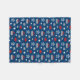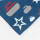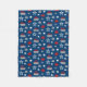 Fleece blanket featuring a stars and curling rocks pattern in red, white and grey on blue background. Perfect for curlers and curling fans.