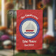 Display this red white and blue nautical themed flag year round at your lake house with your own personalized text on it. Simple design features an abstract sailboat logo style graphic on a plain red background to make it pop. See the whole collection of home decor and patio picnic items in this design at Pinkladybugs shop on Zazzle.