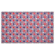 Red, white and navy blue pickleballs on 3-coloured Turing style background.