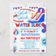 Red White and Blue Splish Splash Waterslide Birthd Invitation