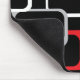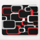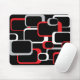 A red, gray and white retro square motif against a black background on a super cool mouse pad.