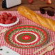 Colorful Christmas inspired colors of red, white and green designed into vivid paper plates.